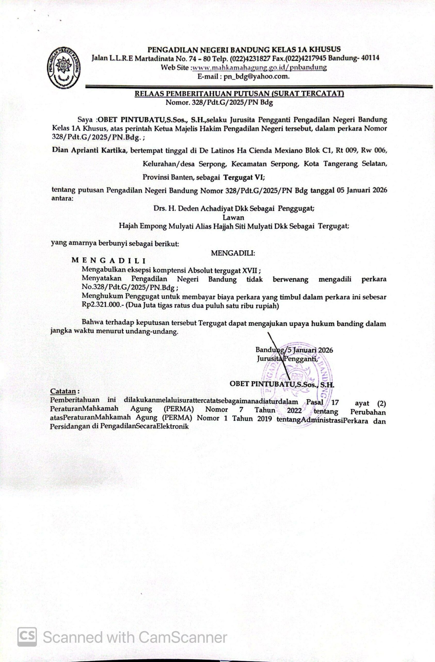 Relaas Pemberitahuan Putusan Banding Nomor 512/Pdt.G/2024/PN Bdg Jo. 102/Pdt.B/2025/PN Bdg Relaas Pemberitahuaan