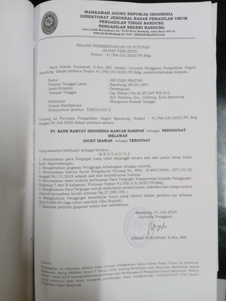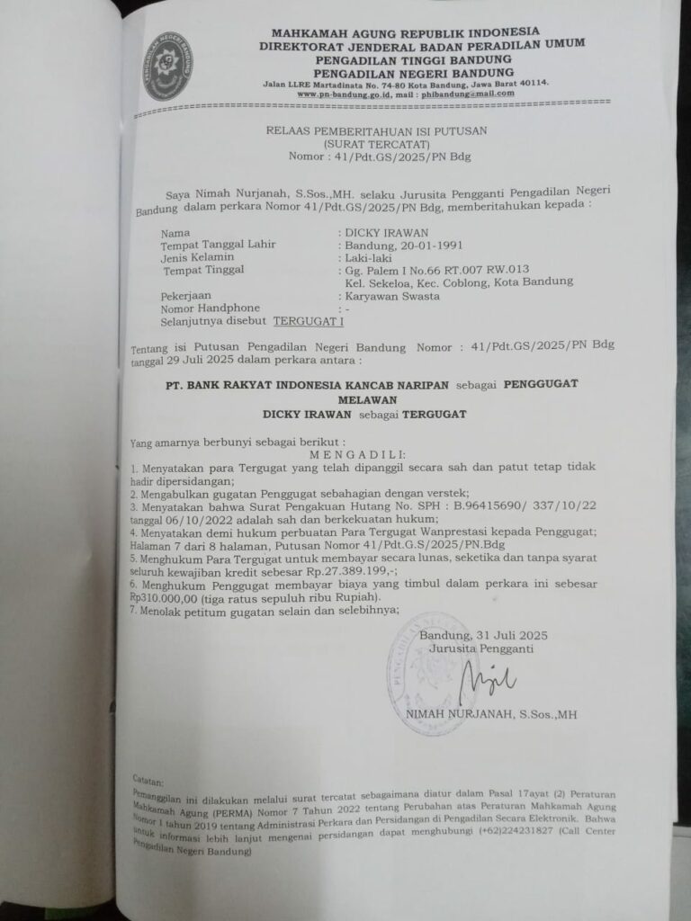• NextRelaas Pemberitahuan Isi Putusan Nomor 584/Pdt.G/2025/PN Bdg