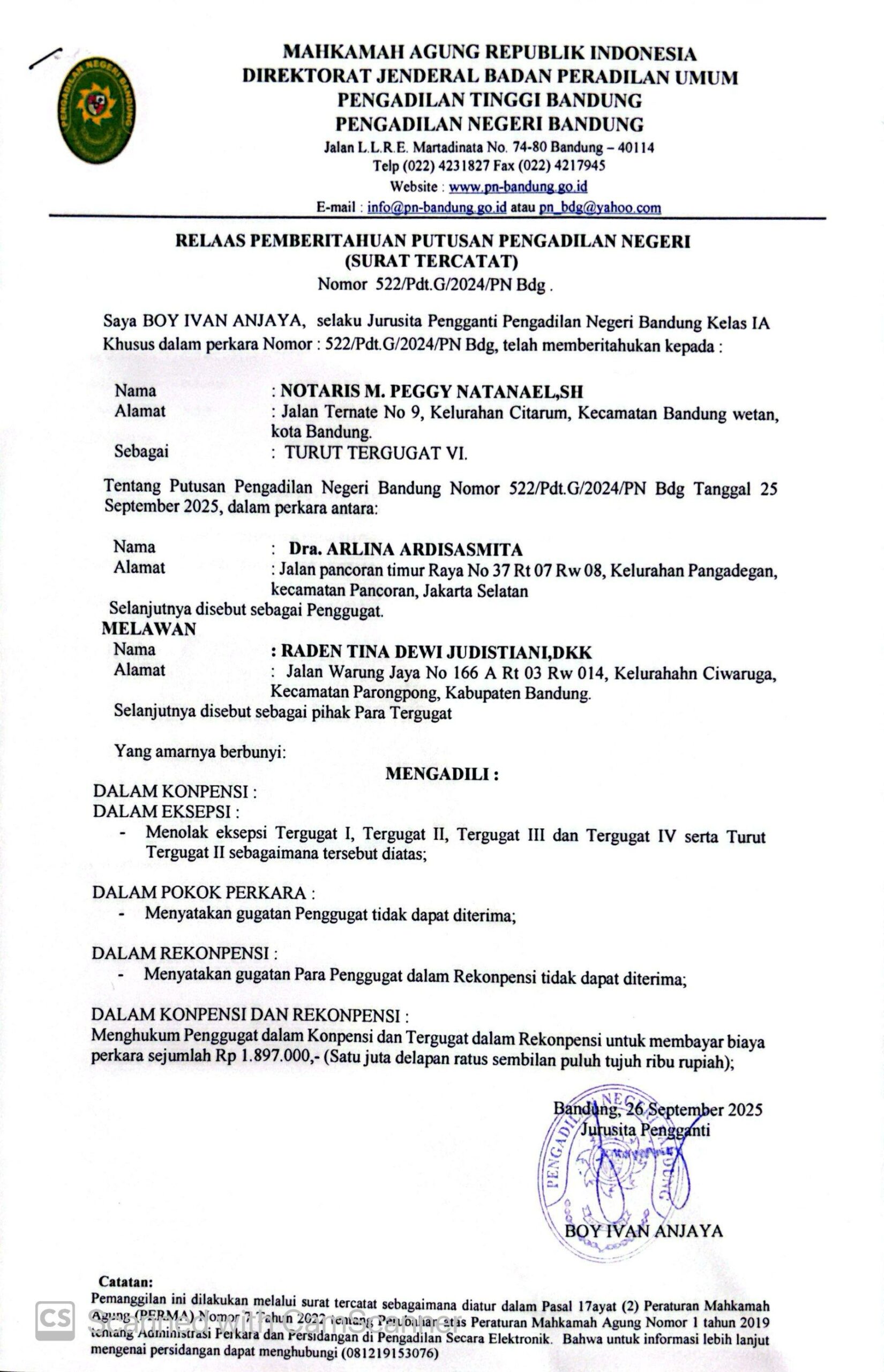 Nomor : 522/Pdt.G/2024/PN Bdg