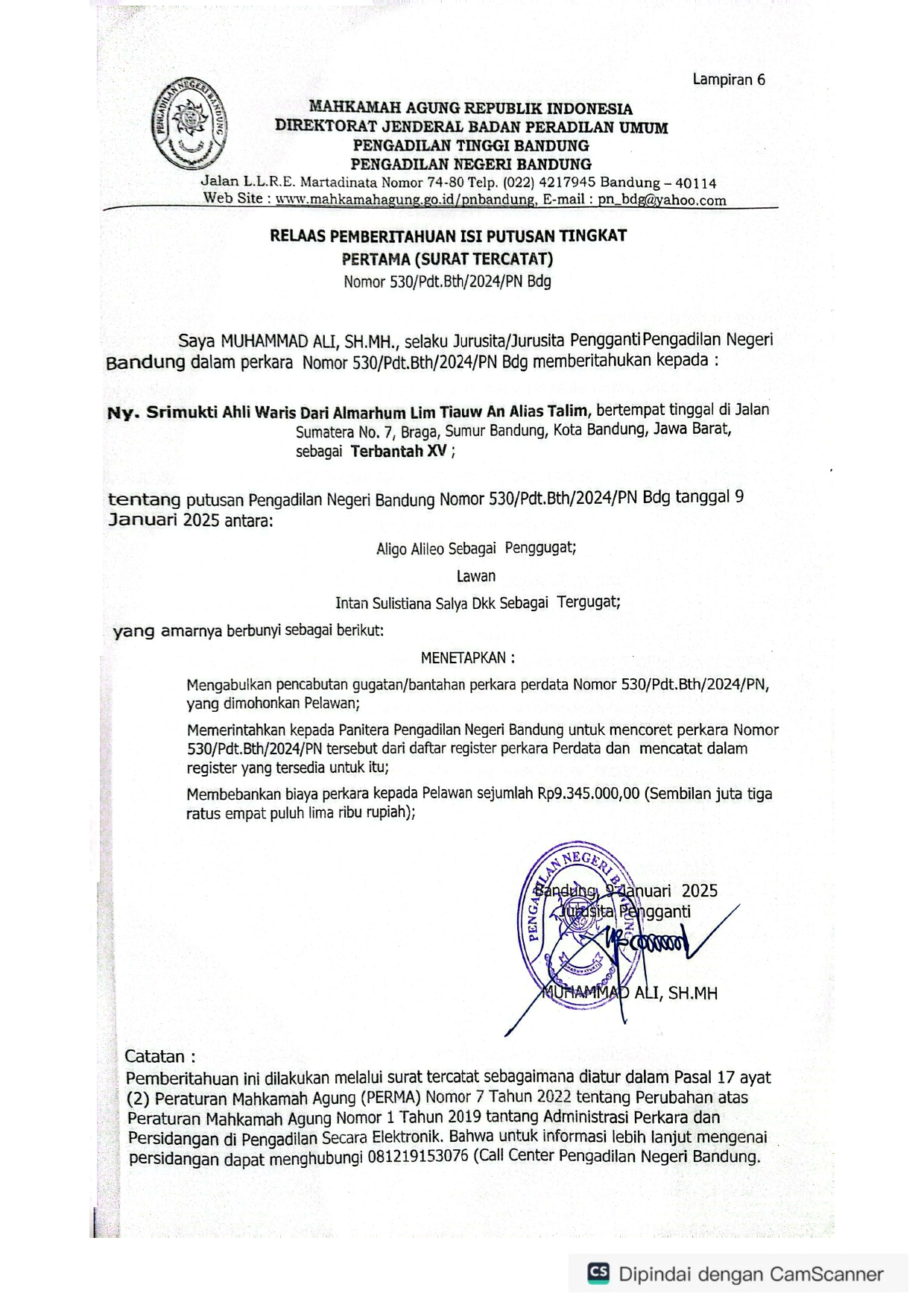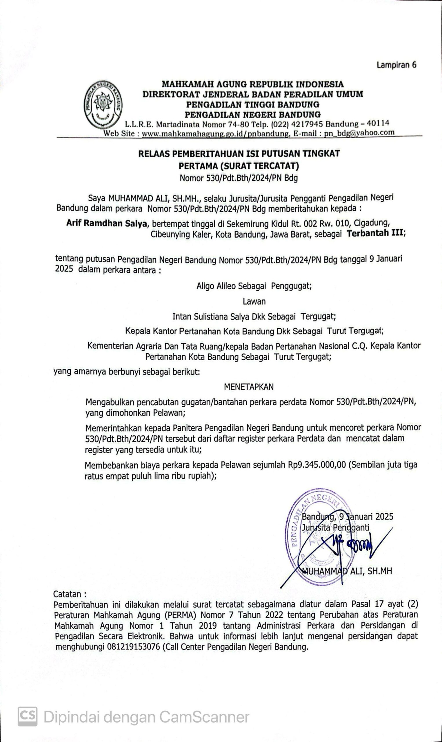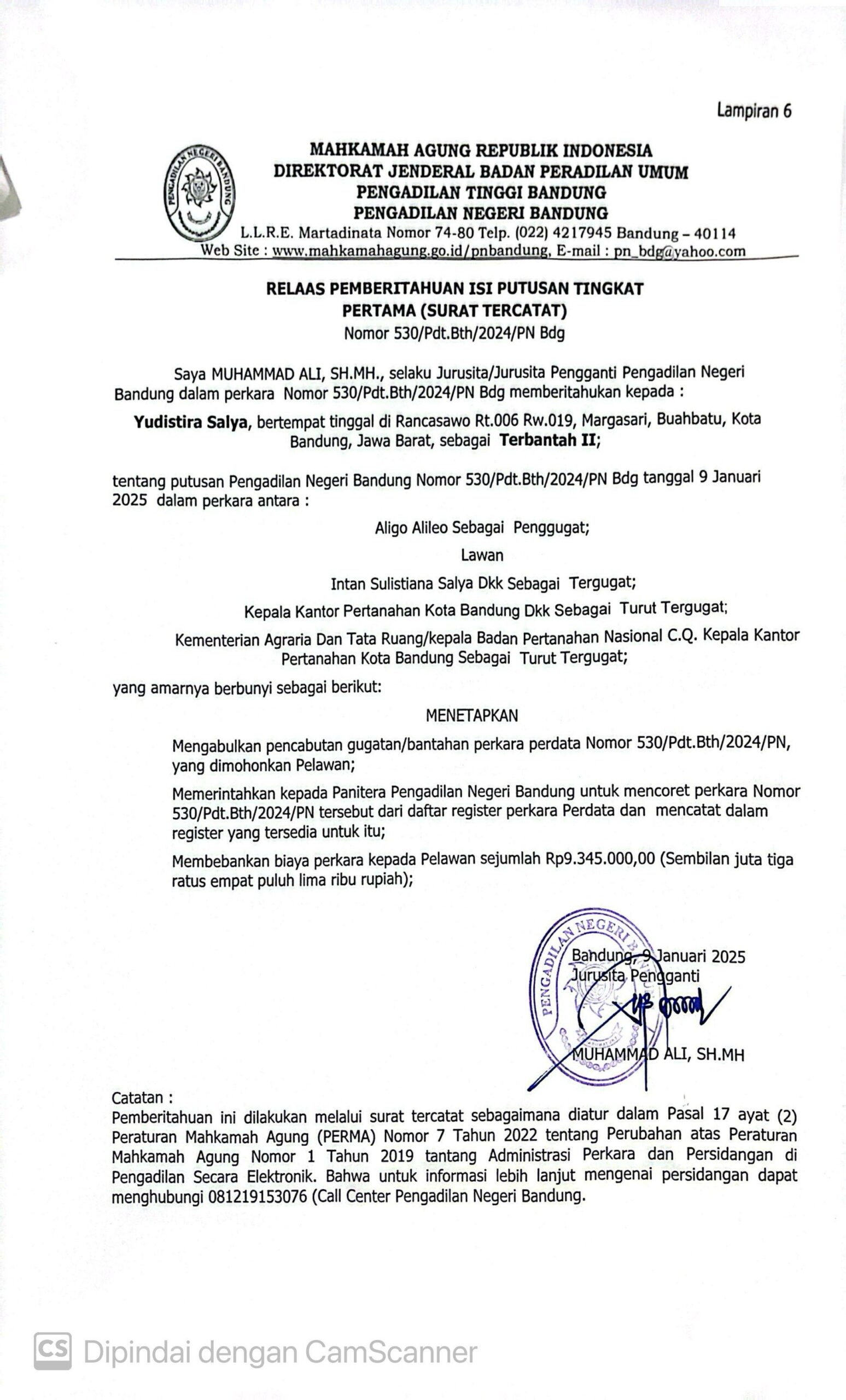 Nomor : 530/Pdt.Bth/2024/PN Bdg