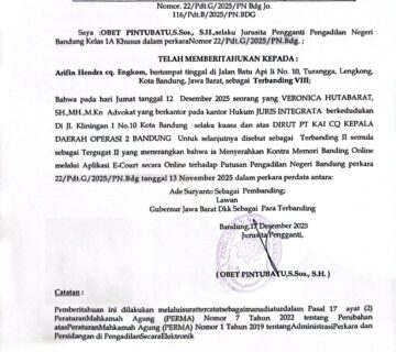 Relaas Pemberitahuan Kontra Memori Banding Nomor 22/Pdt.G/2025/PN Bdg Jo. 116/Pdt.B/2025/PN Bdg Relaas Pemberitahuaan