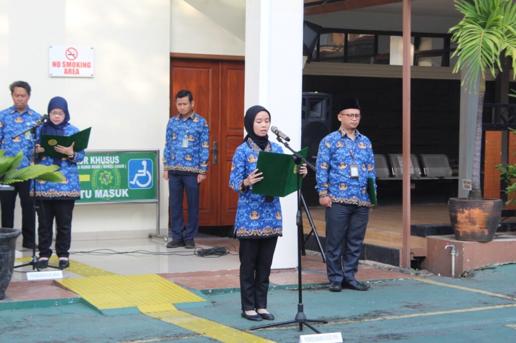 Acara diawali dengan pengibaran bendera Merah Putih diiringi lagu kebangsaan Indonesia Raya, dilanjutkan pembacaan teks Pancasila, pembukaan UUD 1945, dan amanat inspektur upacara. Seusai upacara, dilaksanakan doa bersama untuk memohon keberkahan dan kekuatan dalam menjalankan tugas kenegaraan.