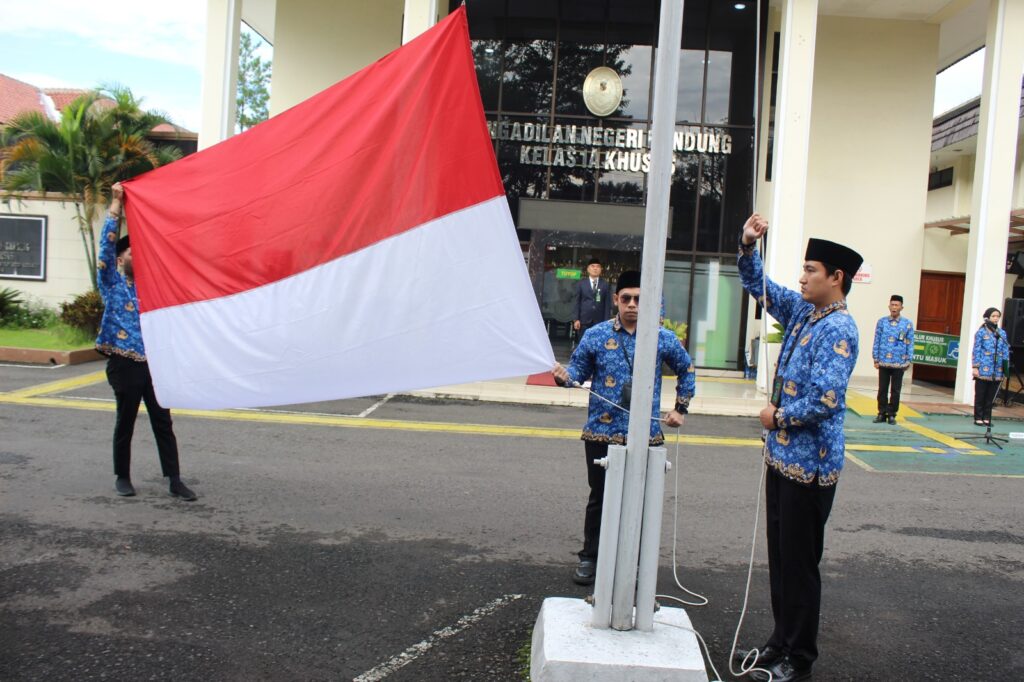 (Bandung, 20 mei 2025), Menindaklanjuti arahan Yang Mulia Ketua Mahkamah Agung Republik Indonesia berkenaan dengan Peringatan ke-117 Hari Kebangkitan Nasional Tahun 2025 dan memperhatikan surat Menteri Komunikasi dan Digital nomor B-395/M.KOMDIGI/HM.04.01/05/2025 tanggal 14 Mei 2025 perihal Penyampaian Pedoman Peringatan ke-117 Harkitnas Tahun 2025, Pengadilan Negeri Bandung melaksanakan upacara bendera pada hari Selasa tanggal 20 Mei 2025. Upacara yang diikuti para Hakim, Pejabat Fungsional dan Struktural, serta Karyawan dan Karyawati tersebut kali ini mengusung tema “Bangkit Bersama Wujudkan Indonesia Kuat”.